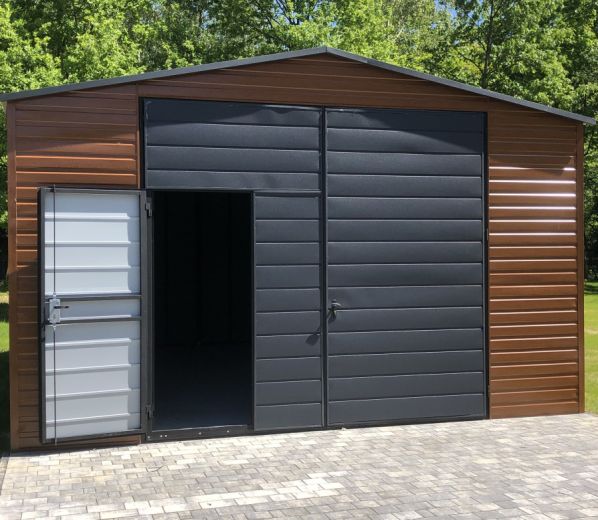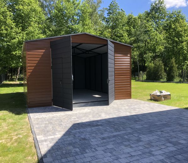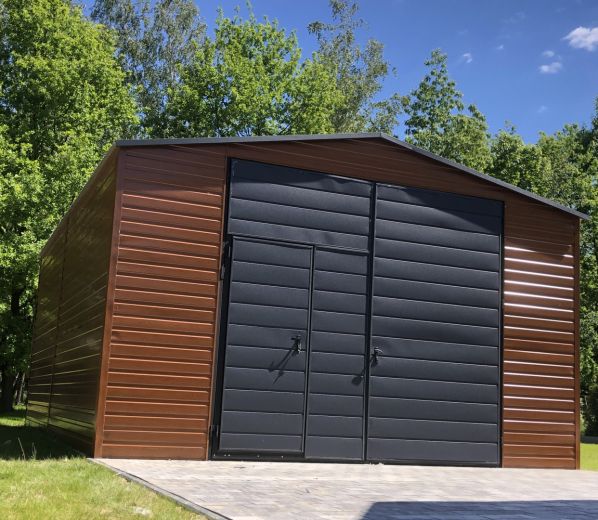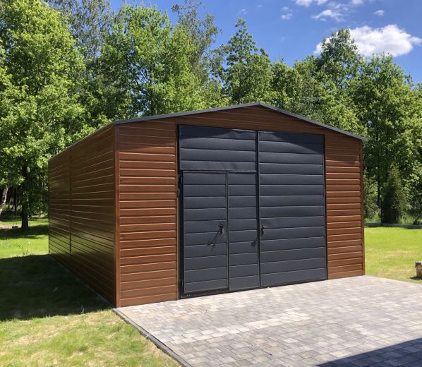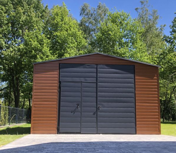 - poszycie garażu wykonane z blachy drewnopodobnej w kolorze złoty dąb