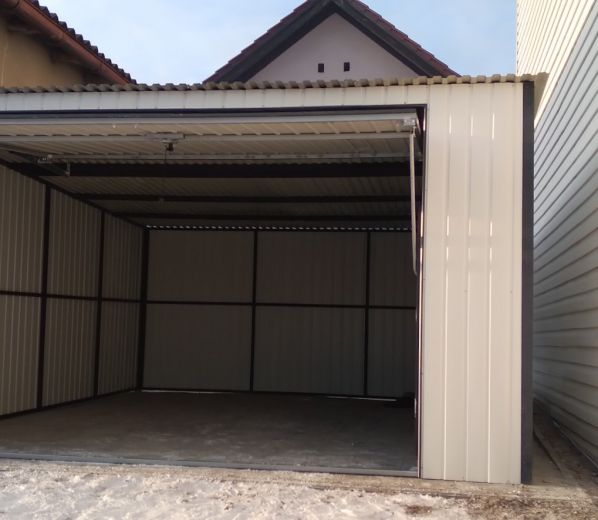 Poszycie ścian wykonane z blachy trapezowej T-7 w kolorze RAL ( brąz, antracyt, czarny lub biały )