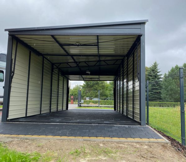 Poszycie dachu wykonane z blachy trapezowej w kolorza RAL ( brąz, antracyt, czarny)