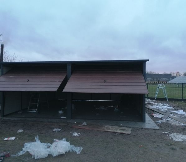 Poszycie dachu wykonane z blachy trapezowej w kolorza RAL ( brąz, antracyt, czarny)