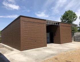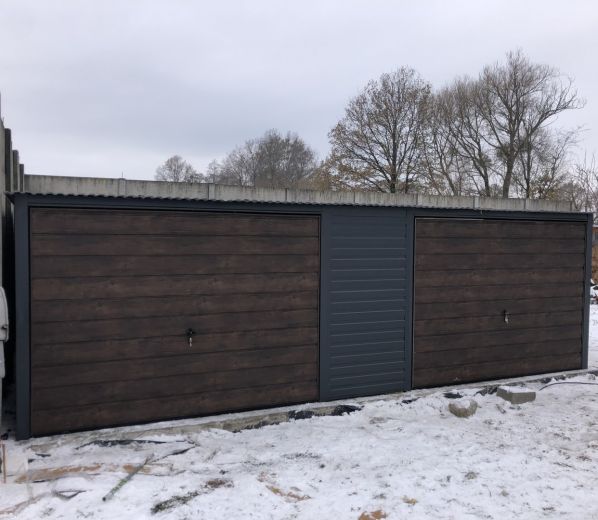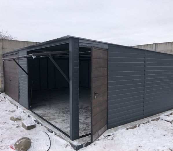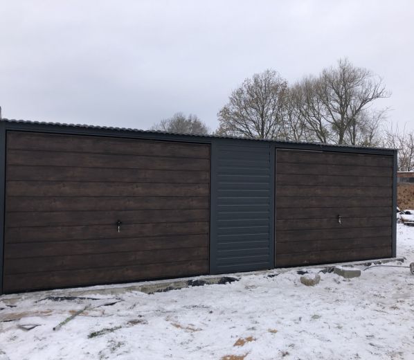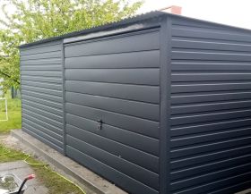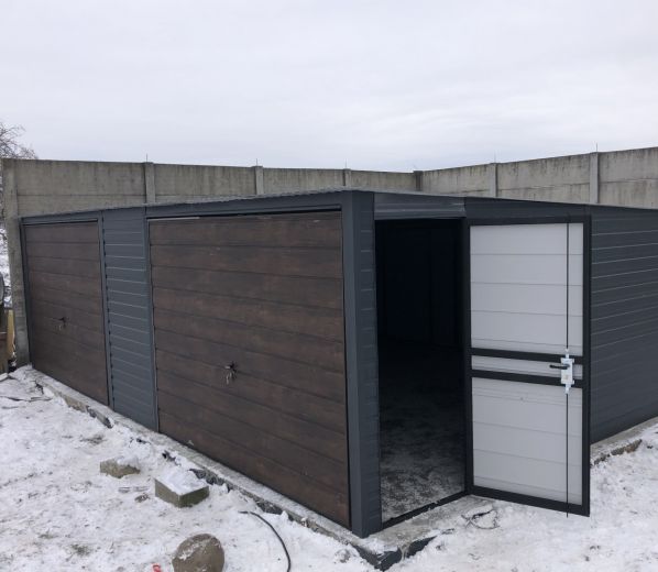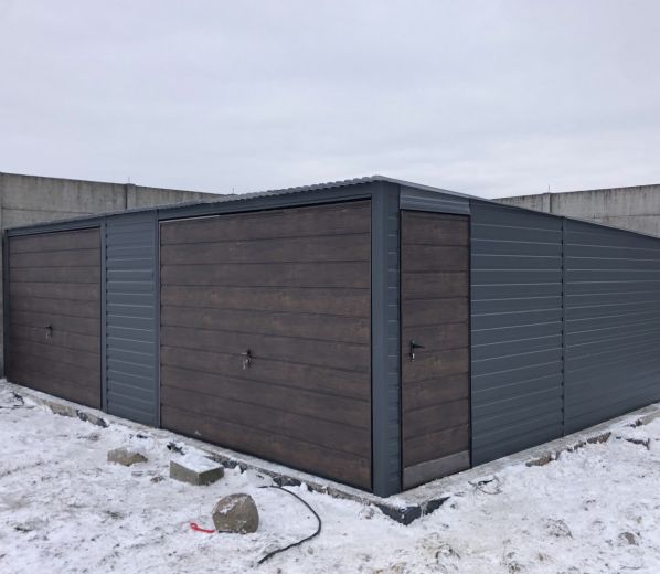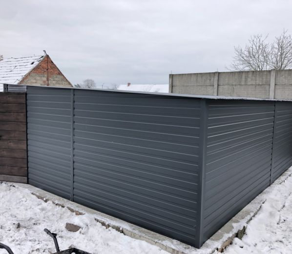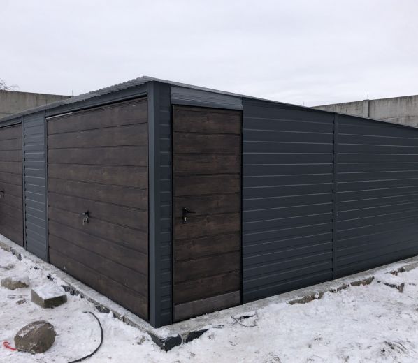 Poszycie ścian wykonane z blachy trapezowej T-7 w kolorze RAL ( brąz, antracyt, czarny lub biały )