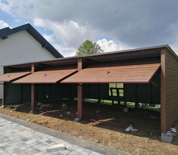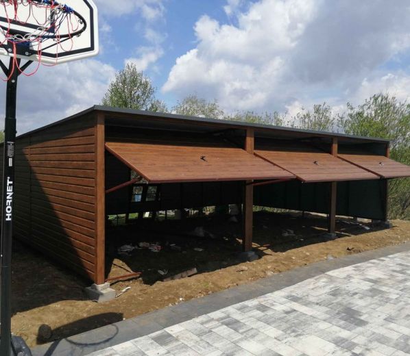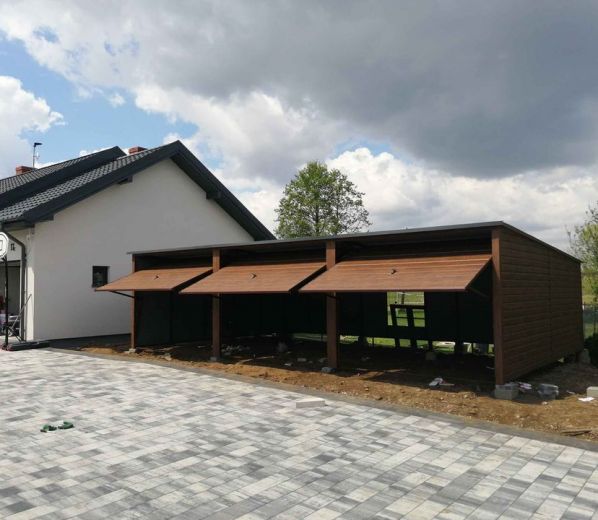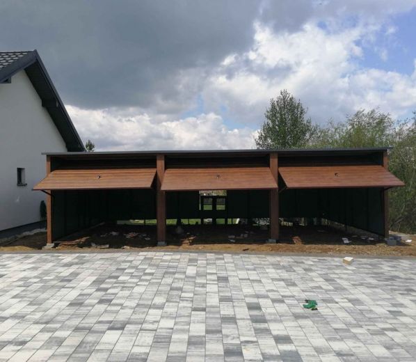 Poszycie dachu wykonane z blachy trapezowej w kolorza RAL ( brąz, antracyt, czarny)