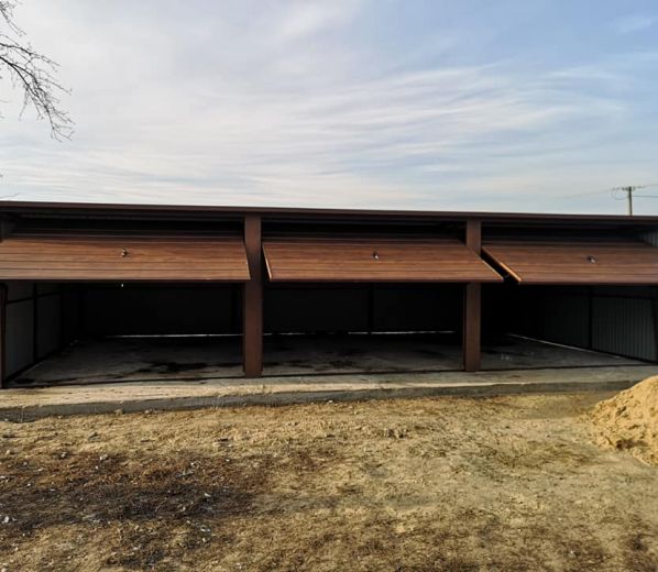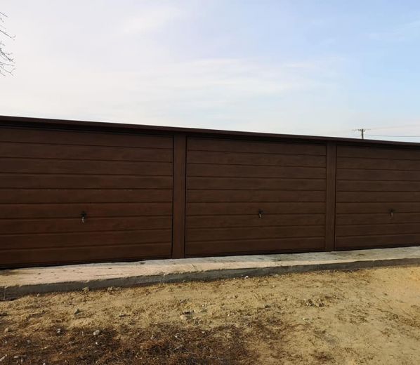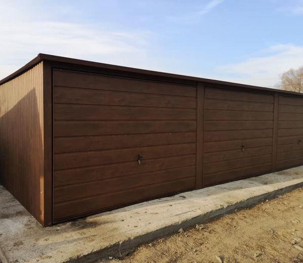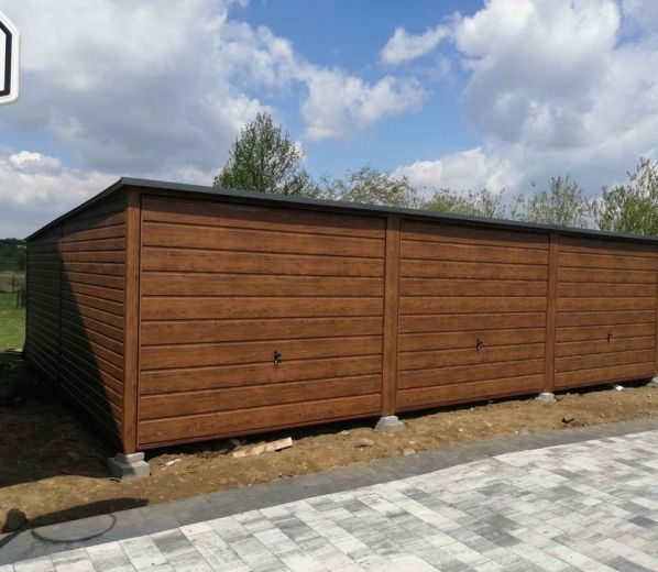 Poszycie ścian wykonane z blachy trapezowej T-7 w kolorze RAL ( brąz, antracyt, czarny lub biały )