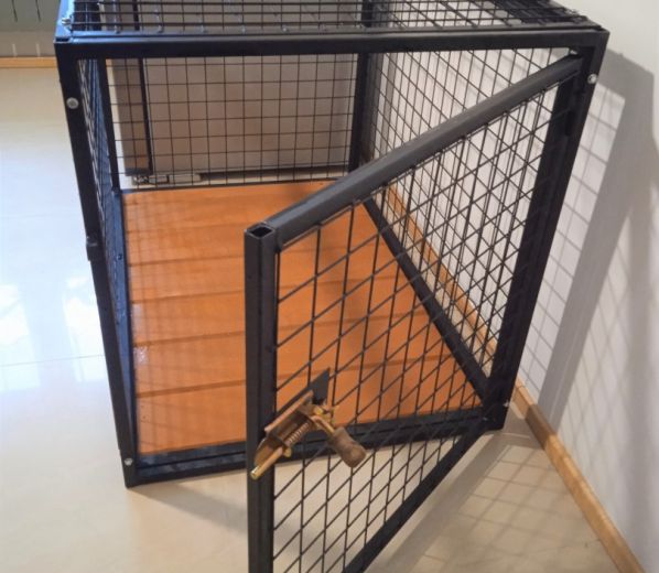 Ściany klatki pokryte są siatką zgrzewaną (oczko 5x5 cm).