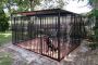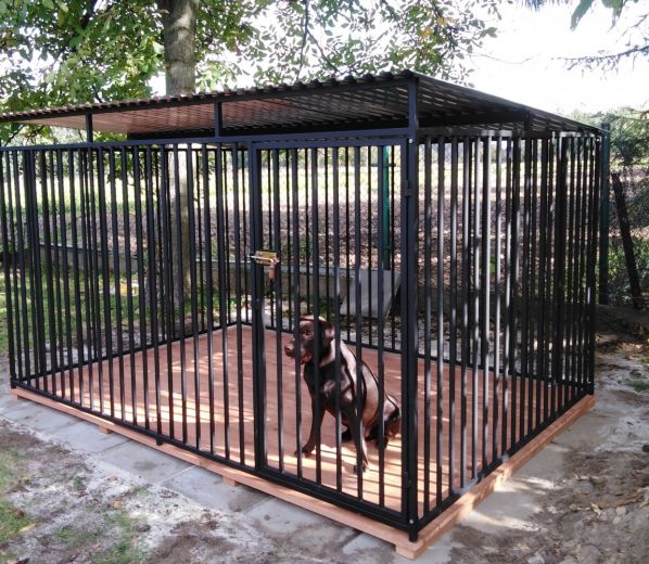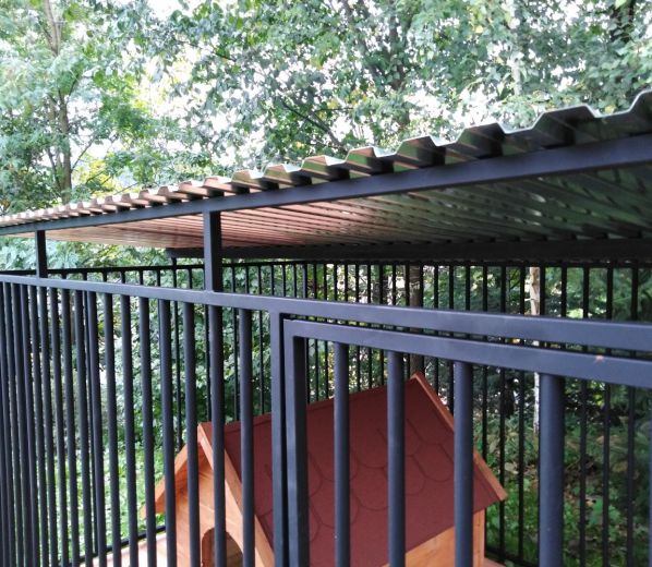 Kojec w całości wykonany jest z profili zamkniętych oraz rurek. Całość malowana na kolor czarny farbą podkładową antykorozyjną. Kojec zadaszony jest blachą trapezową ocynkowaną. Furtka w standardzie umiejscowiona jest z prawej strony.
