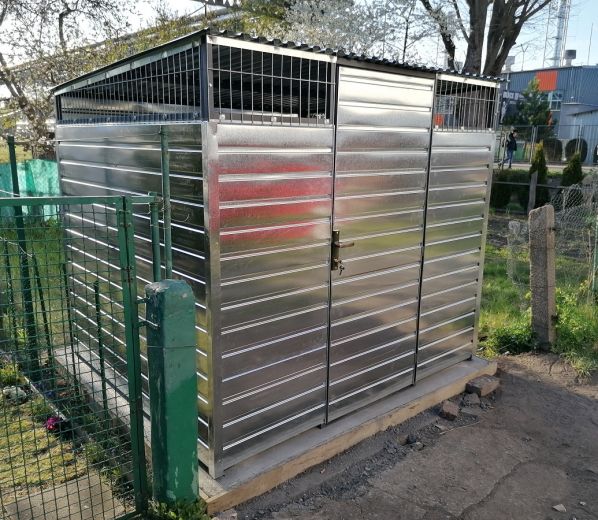 - Ocynkowana blacha do wysokości 1,7 m, powyżej siatka stalowa,